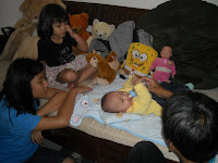 Bayi nana kata dokter anak, kuning, kadar bilirubinnya 12 harusnya paling tinggi 10, sempat di sinar 1 hari, nana udah boleh pulang duluan tapi bayiku masih di RS, untung dina mau menjaga dan merawat keponakannya yang lagi disinar. alhamdulillah operasinya bagus jadi nana udah bisa jalan-jalan, dengan susah payah memompa asi nana yang belum banyak, ada sedikit ah paling juga 10 atau 15 ml dibawa ke rumah sakit sama akang, untung rumah kami dekat dengan RS, 2 jam sekali bolak balik rumah- rs, dina yang disana merawat bayi nana, semalaman tidak tidur, hebat, baik sekali adikku yang satu itu, dari nol besar tidak mengenal mengurus bayi, kursus kilat dengan adiknya akang, dinar, sekarang dina sudah mahir menggendong, mengganti popok, memberikan susu, menjadi ahli karena terpaksa menurutnya, alhamdulillah adikku baik banget. tidak sia-sia usahanya malam itu, besoknya bilirubinnya 8, turun 4 poin, langsung deh boleh pulang, alhamdulilah sekarang kami berkumpul bersama-sama lagi.